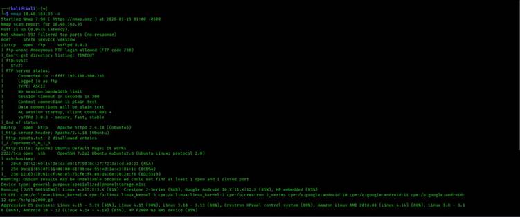 2. Perform an initial scan using nmap: nmap 10.48.163.35 -A
